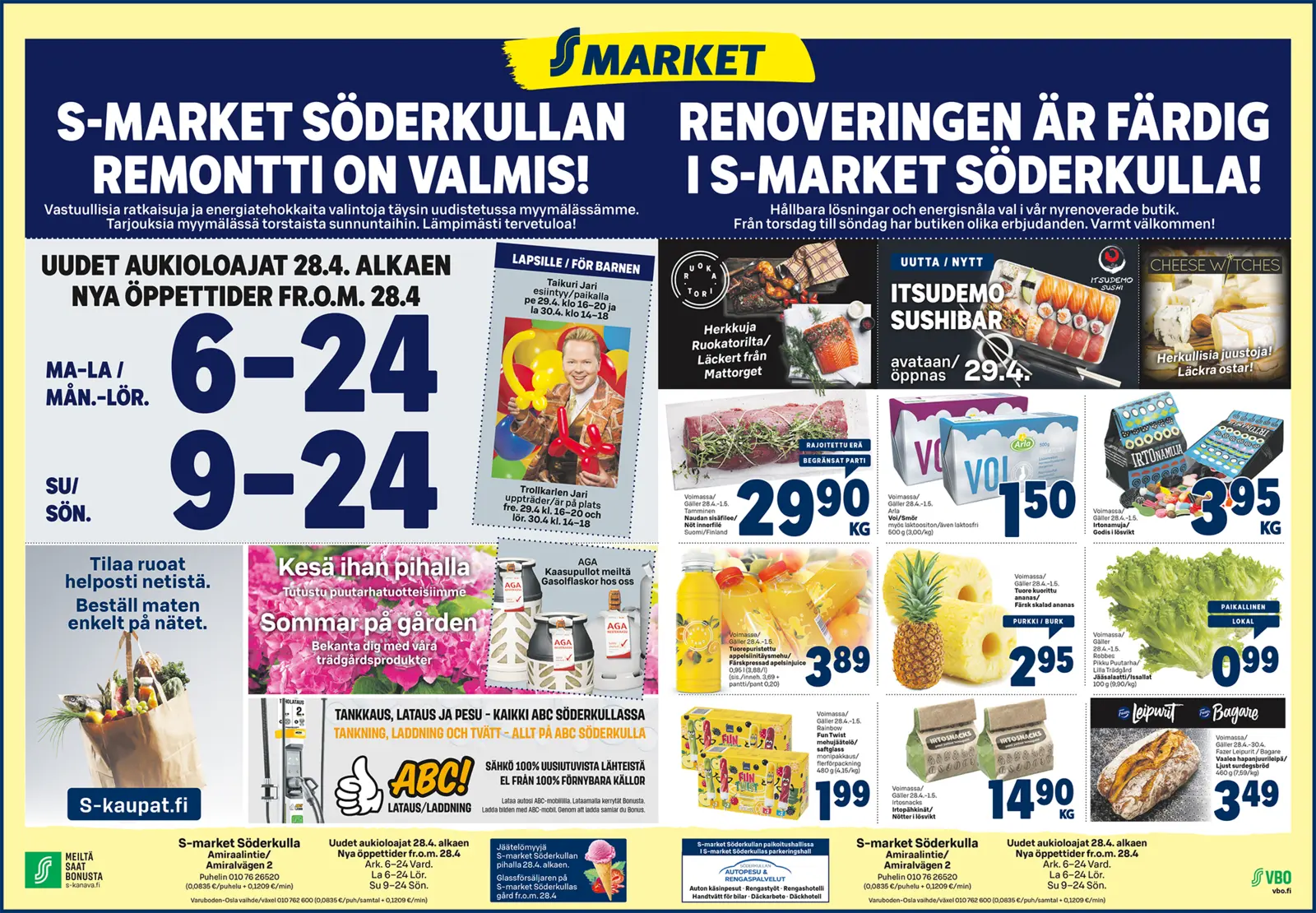 Renoveringen i S-market Söderkulla är färdig och butiken har fått ett nytt fräscht utseende och nya diskar och hyllor och ett bredare sortiment av tjänster. Renoveringen var rätt så omfattande och har räckt ett par månader. Butiken har varit öppen under hela renoveringen och betjänat sina kunder. Den nyrenoverade butiken firas 28.4–1.5 med olika produkterbjudanden.